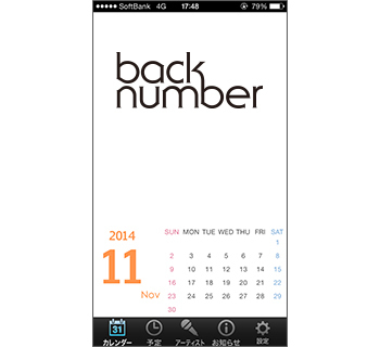 アーティストのカレンダースキンをダウンロードして設定することができます。下部メニューの「設定」→「スキン変更」から、お好きなスキン画像を選択してください。