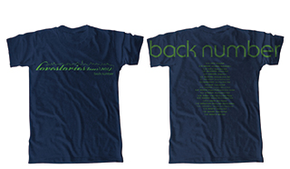 フロントにはシンプルに筆記体の”love stories tour 2014”ロゴをプリントする一方、バックには”back number”ロゴをデカデカとオーバープリント。一人一人にback numberを背負ってもらいたいという思いもこめた、シンプルながらインパクト十分なTシャツ!